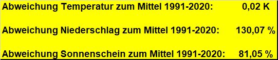 Folgende Grafiken sind alle vom Deutschen Wetterdienst (DWD) von der Seite (ACHTUNG: bei den Abweichungen ist der Bezugszeitraum 1961-1990):